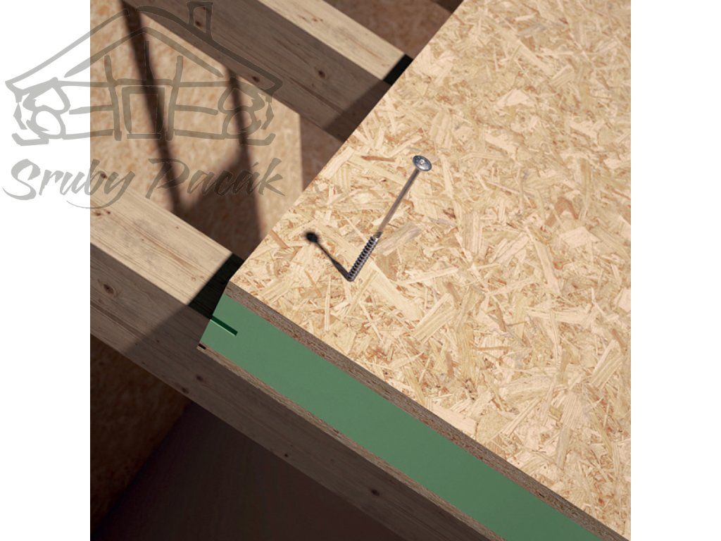 TBS je konstrukční vrut do dřeva s integrovanou „podložkou“ (límcovou hlavou) pro mimořádnou pevnost v tahu. Je ideální pro kotvení stropnic/joistů k pozednicím a prahům tak, aby bylo dosaženo vysoké odolnosti proti nadzvednutí větrem (wind uplift). Límcová hlava zajišťuje výbornou pevnost v tahu, takže se často obejdete bez dalších bočních zajišťovacích systémů.