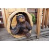 Medvěd vyřezaný motorovou pilou v kmeni jedle nebo smrku, průměr kmene 50 - 70 cm, povrch je opálen plamenem. Medvěd může být ležící nebo sedící ( upřesnit možno mailem)